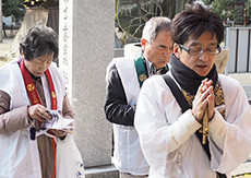 普通の観光ですとそこまで気をつけることはないんでしょうが、お寺は急な階段や坂道も多く、歩きにくい箇所なども多いものです。足もとに注意しながら歩いていただけるように危険だと思うところはゆっくり歩いていただき、少しの段差であっても注意を促すなどしています。いろんな思いを持って参加されるお客様がいらっしゃるので、その思いに沿うように、お邪魔にはならないように、と思っています。